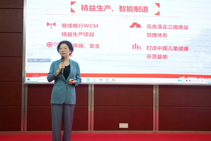 刘景萍董事长引用席大大总书记在2022年博鳌亚洲论坛上的重要讲话勉励全体与会人员,在海南自贸港建设的机遇期,认真学习贯彻落实省第八次党代会精神,坚持党建引领企业发展,将GA黄金甲药业集团打造成中国儿童健康领军企业。